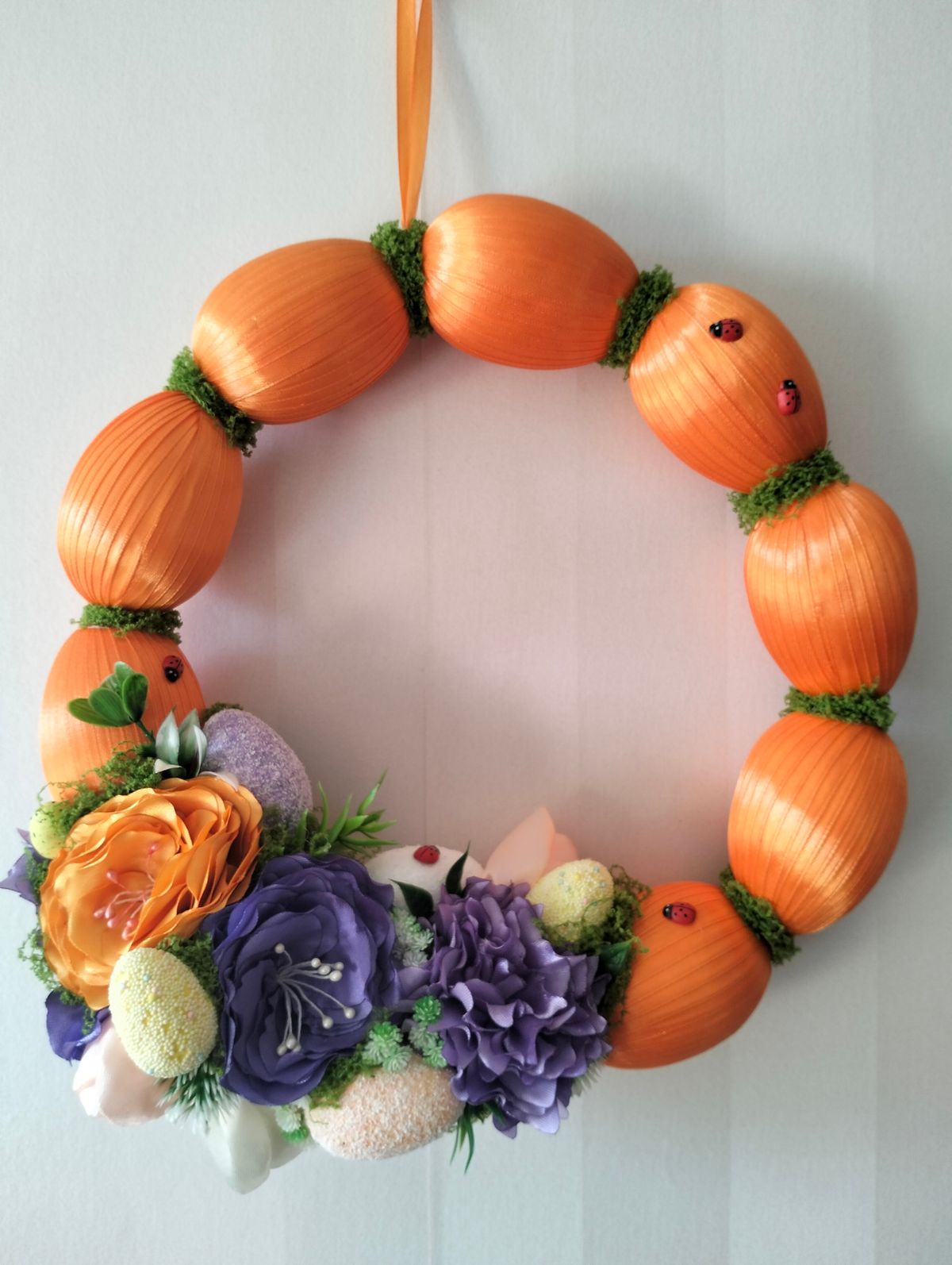 Wianek z jajek w intensywne pomarańczowym kolorze z dodatkiem fioletu.