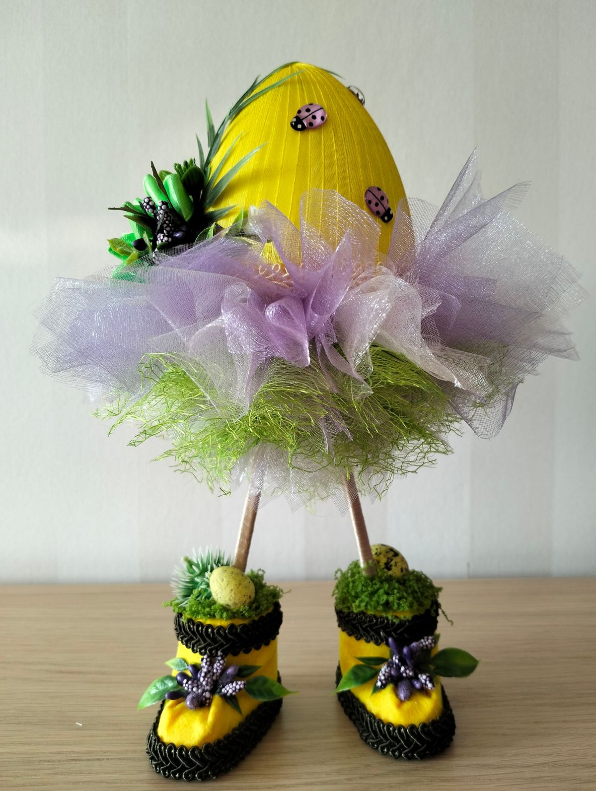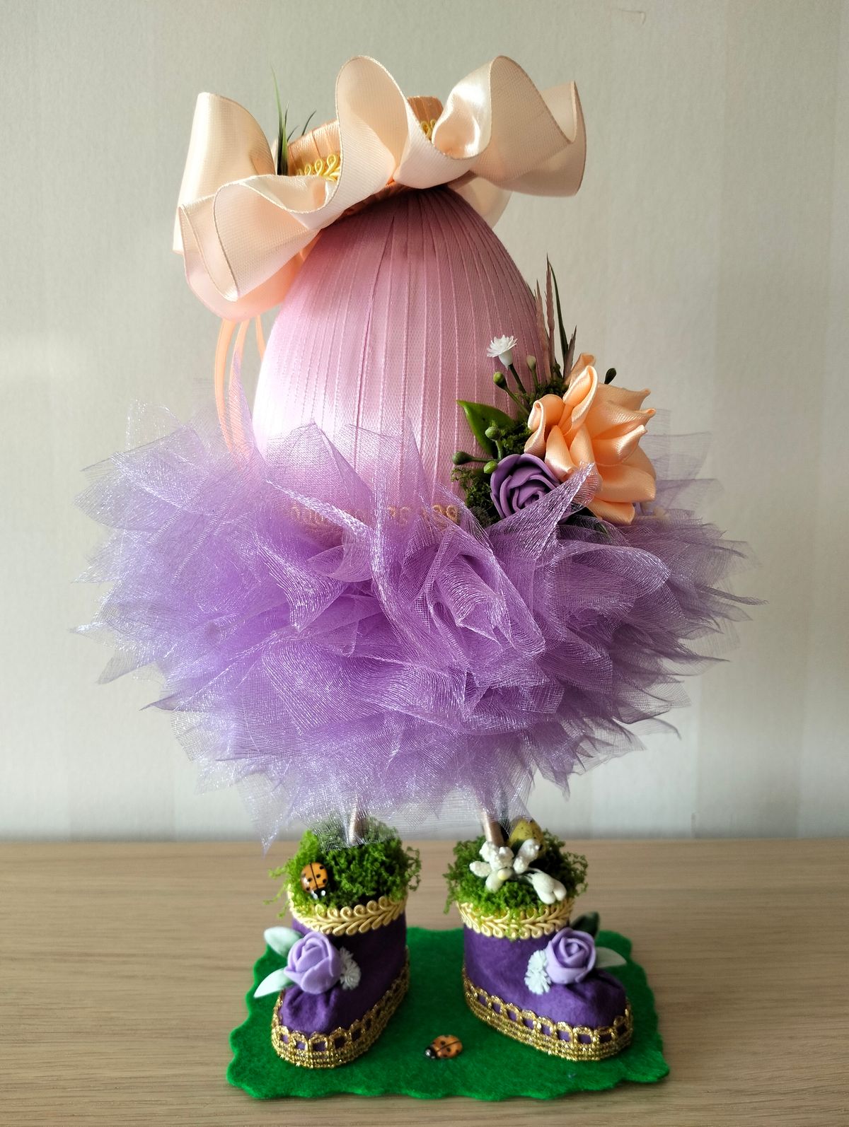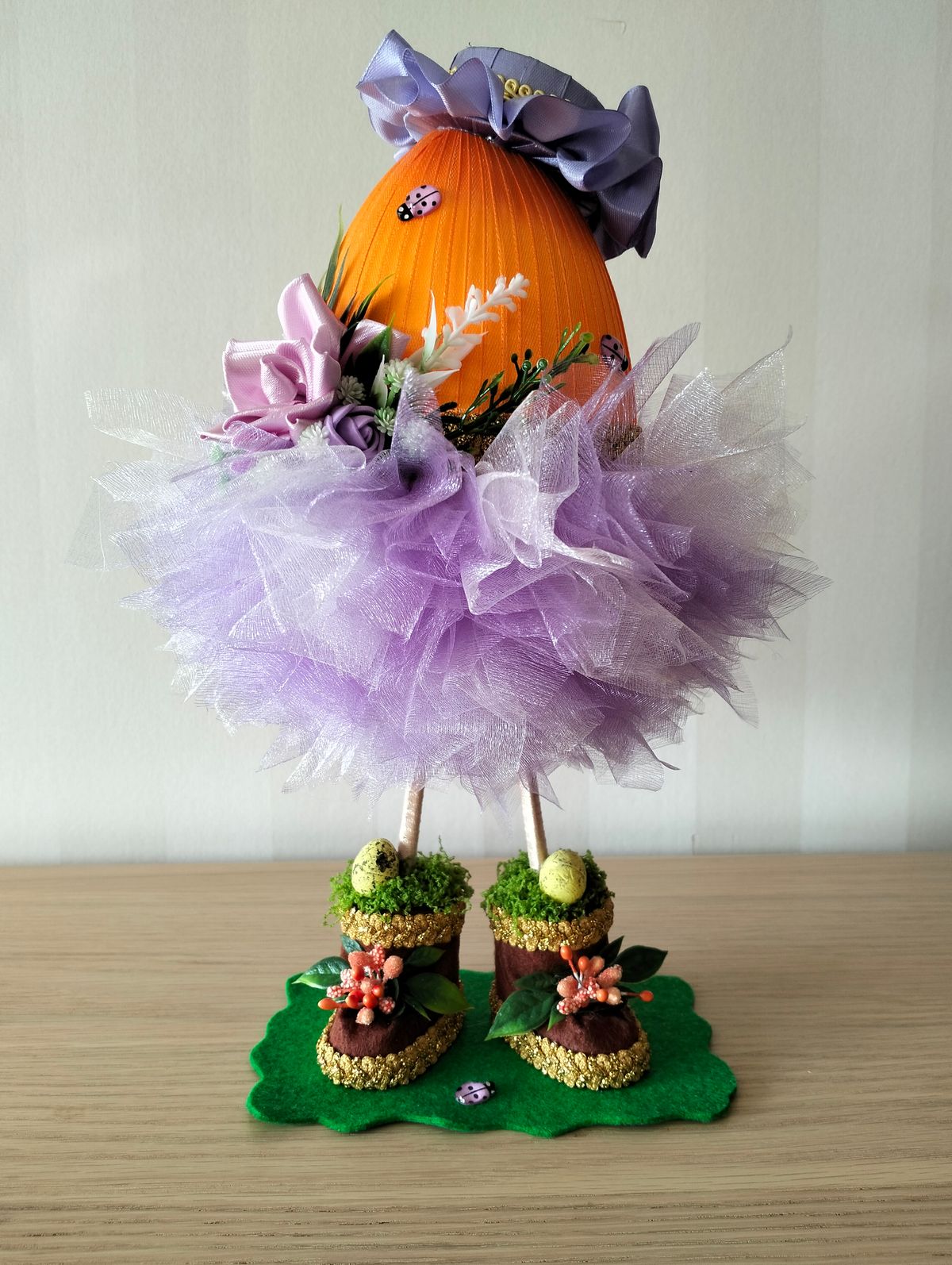 Jajko dekoracje w kolorze intensywnej pomarańczy z dodatkiem fioletu. Około 25cm