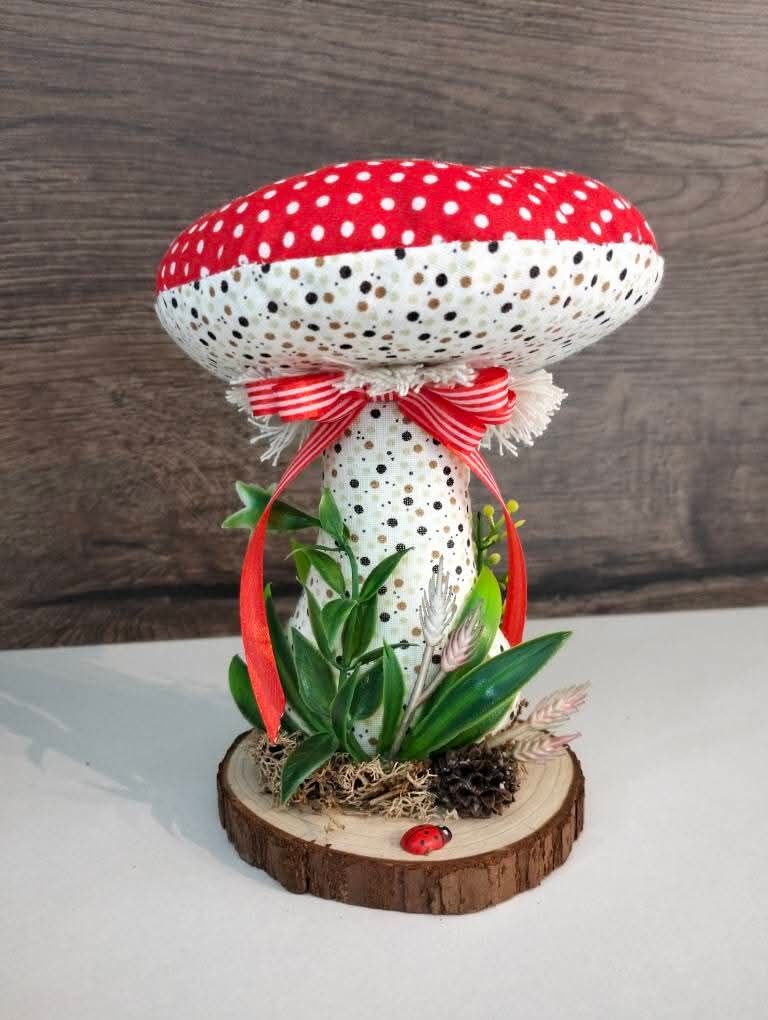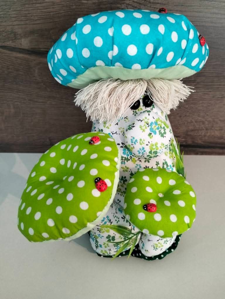Grzybek uszyty z materiałów bawełnianych. 20cm