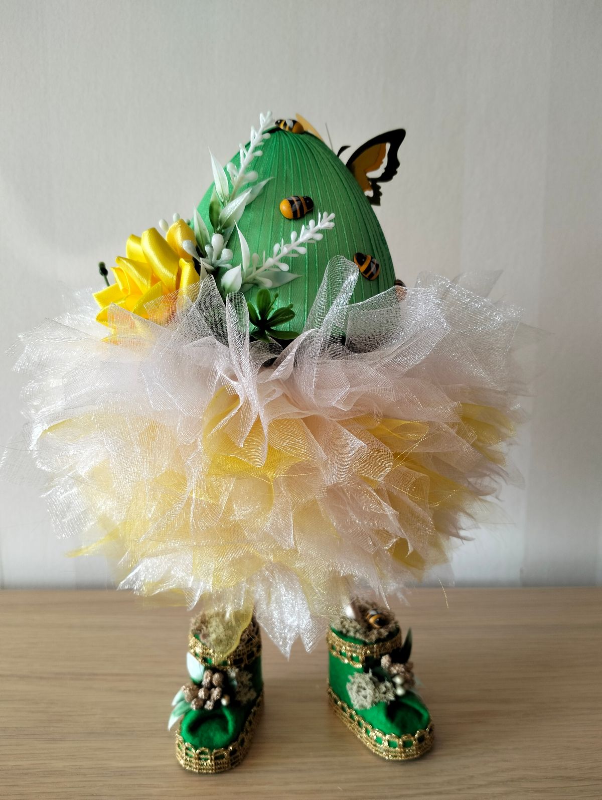 Jajko wielkanocne w odcieniach zieleni z dodatkiem bieli i żółtego. 20cm